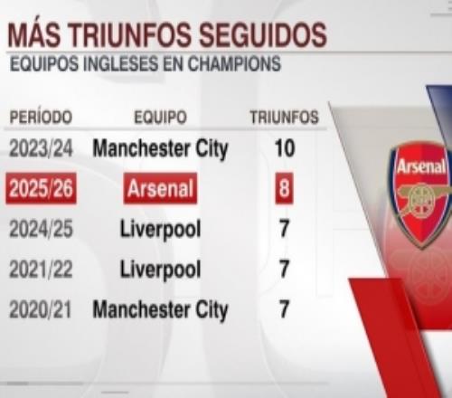 体育播报1月29日宣 在本轮欧冠,阿森纳3-2击败阿拉木图凯拉特,本赛季8战全胜。以下为英超球队在欧冠连胜纪录榜...